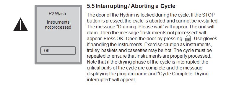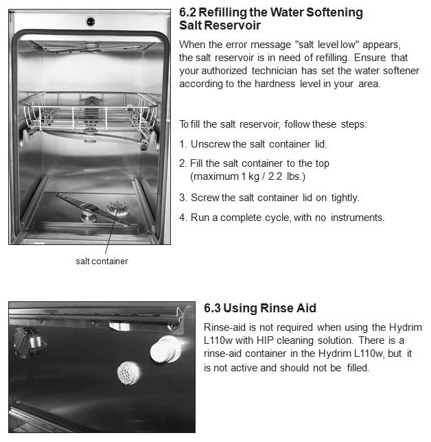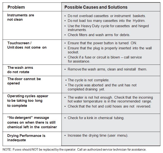 When used correctly, the Hydrim L110w is effective for the removal of debris on instruments that may result in the insulation of microorganisms during terminal sterilization. Prior to placing instruments in the Hydrim, consult the instrument manufacturer’s reprocessing instructions. All critical and semi-critical instruments can be considered clean after processing in the Hydrim L110w. Non-critical instruments can be terminally processed in the Hydrim L110w.