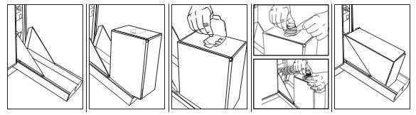 - Connect new container and insert into the cleaning solution compartment. Follow the instructions printed on each cleaning solution container.